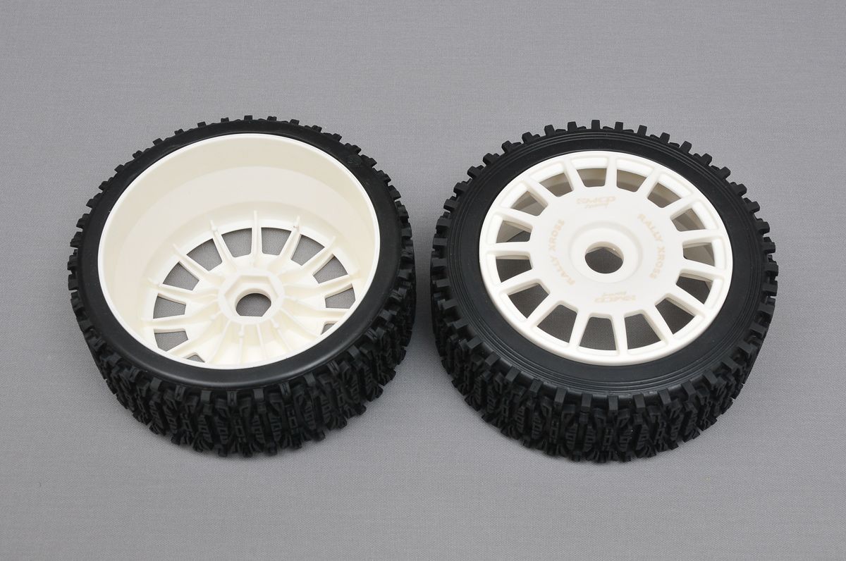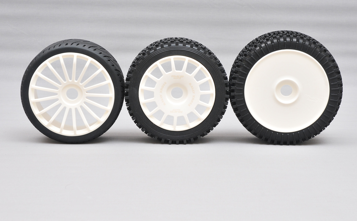 When compared to our on-road asphalt tire the new tires have the same 160mm diameter however the outer sidewall thickness on the Rally-Xross is greater beacuse of the reduced wheel diameter. By increasing the sidewall thickness we maintain more resisting power for rough gravel surfaces. This also helps more cornering traction on gravel and dusty tarmac surfaces.